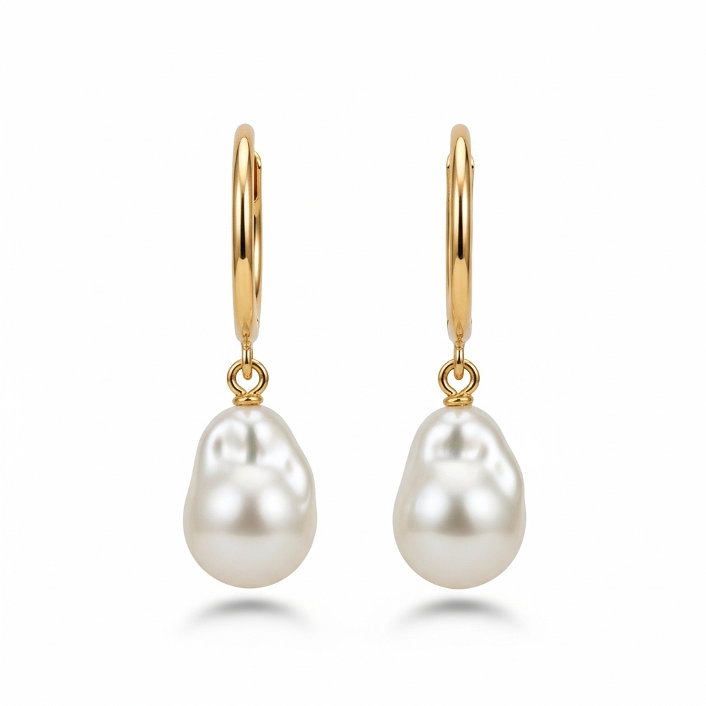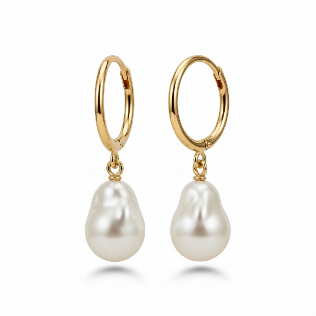 Organic Pearl Drop Hoop Earrings in Gold Vermeil Everyday Luxury Jewelry